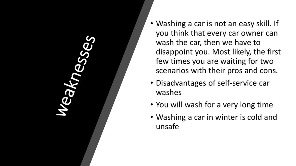 swot analysis of selfservice car washesThe presentation was made by Abilkaiyr Zangar and