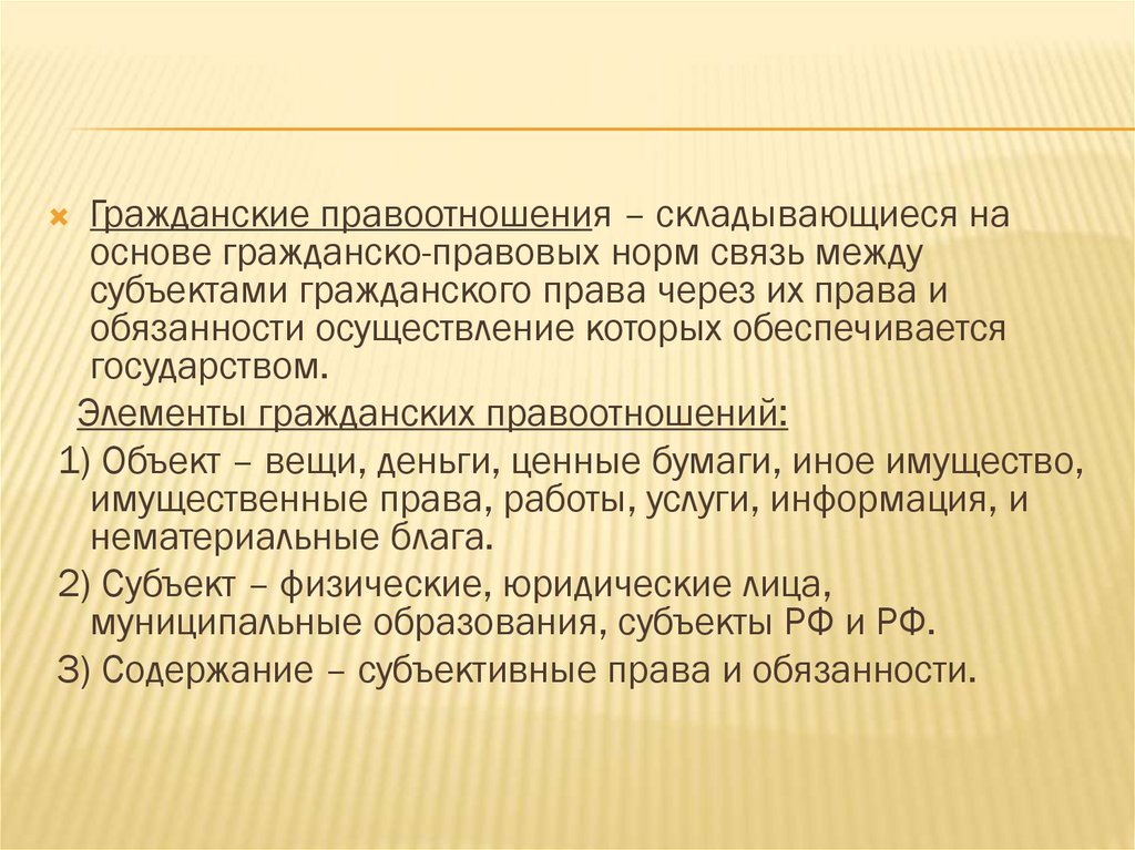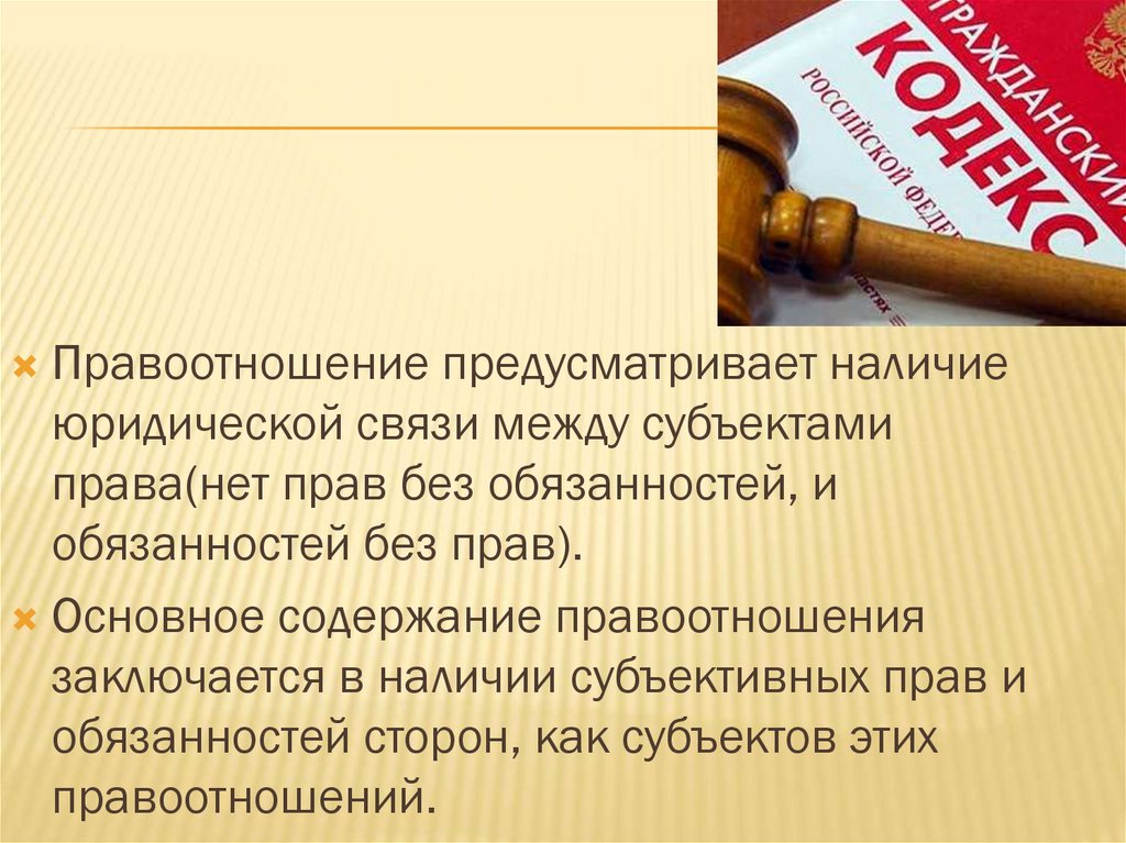Гражданские правоотношения – складывающиеся наоснове гражданско-правовых норм связь между