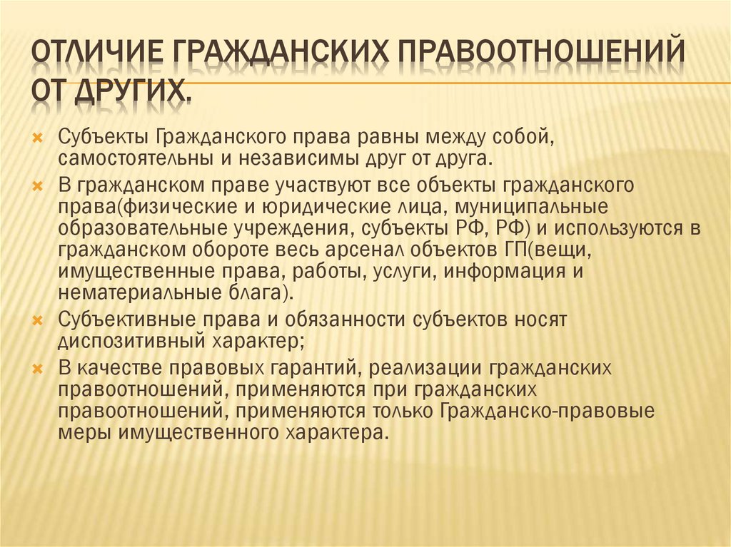 ОТЛИЧИЕ ГРАЖДАНСКИХ ПРАВООТНОШЕНИЙОТ ДРУГИХ.