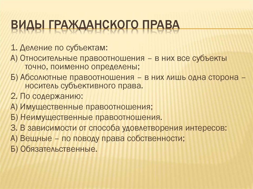 ВИДЫ ГРАЖДАНСКОГО ПРАВА1. Деление по субъектам: