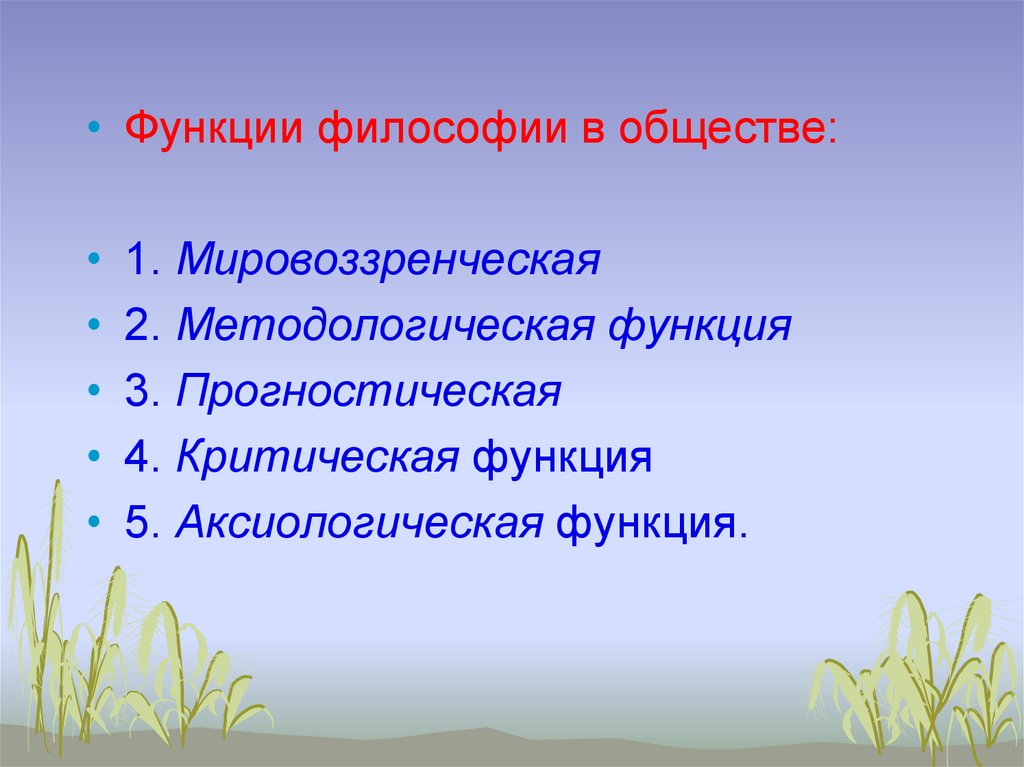 2. Функции философии в обществе.
