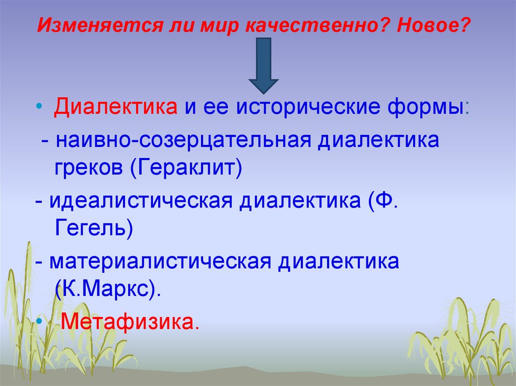 Изменяется ли мир качественно? Новое?• Диалектика и ее исторические формы: