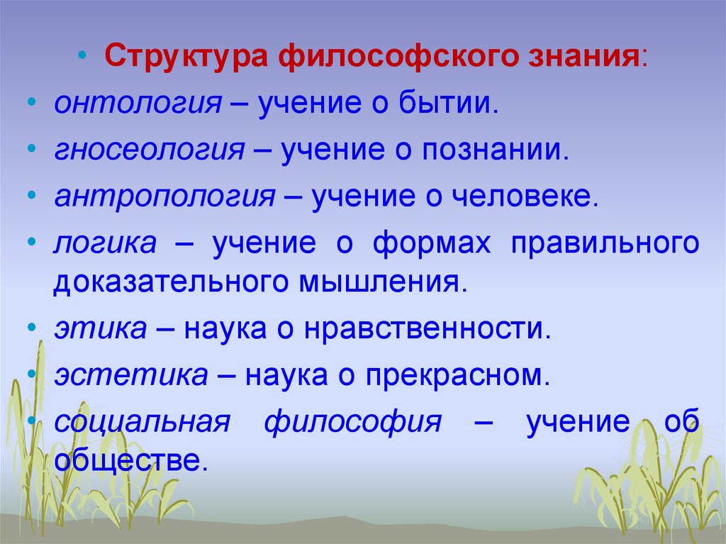 • Структура философского знания: