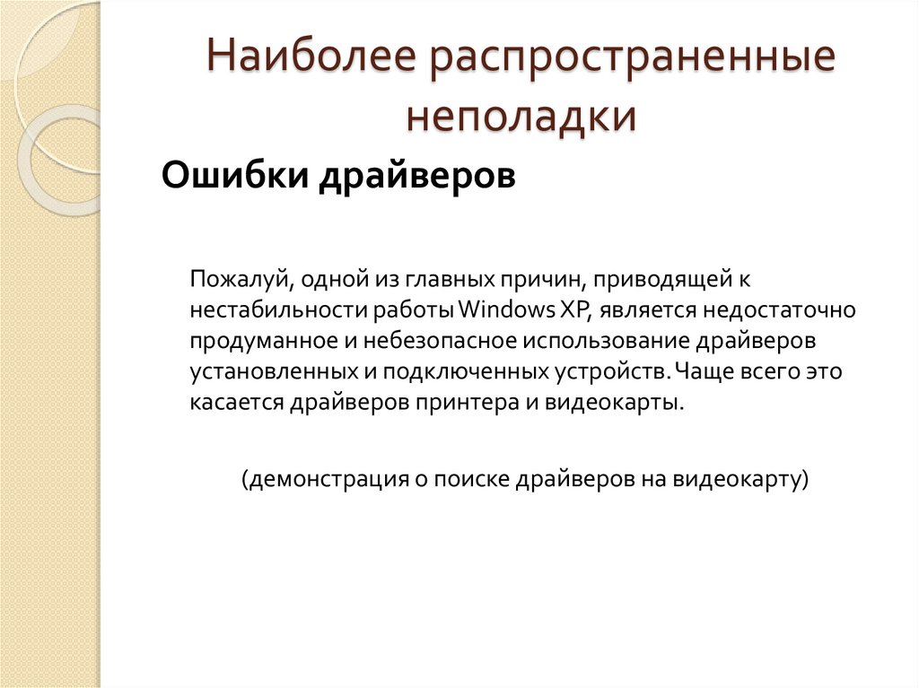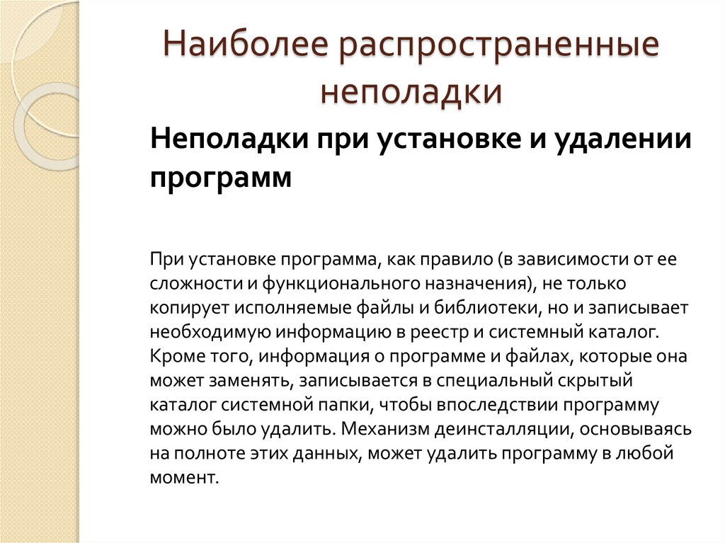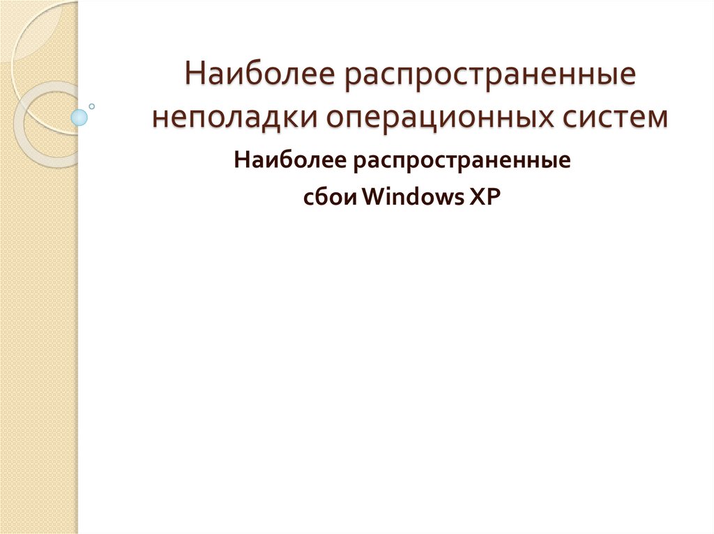 Наиболее распространенныенеполадки операционных систем