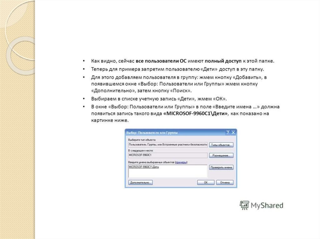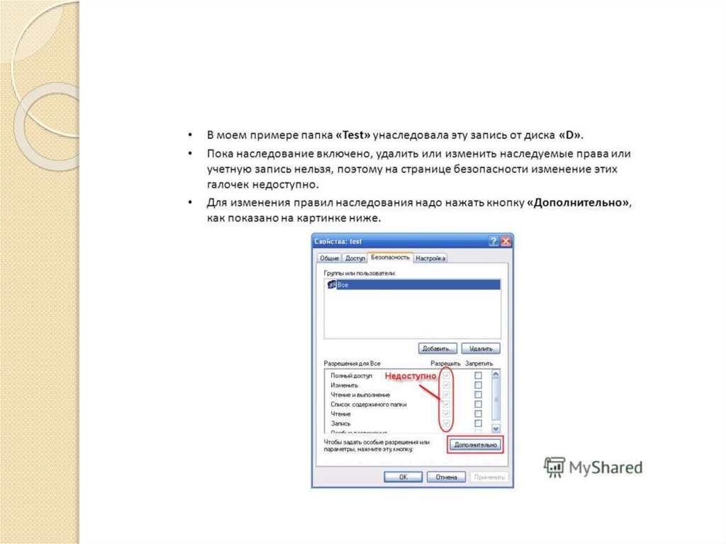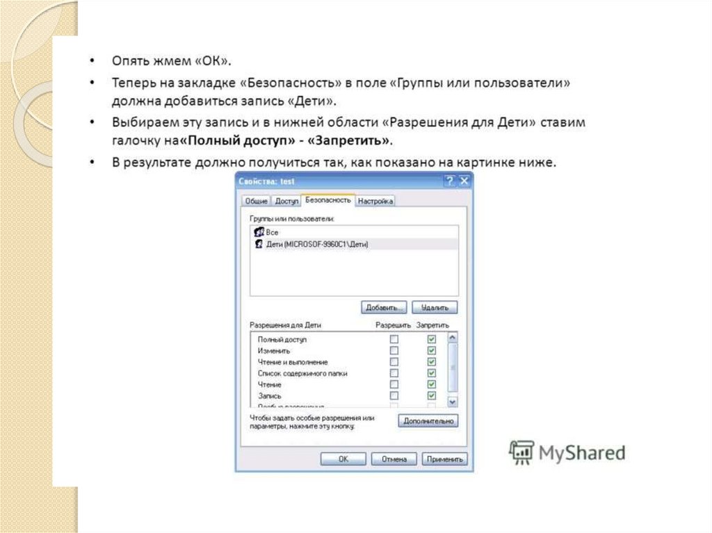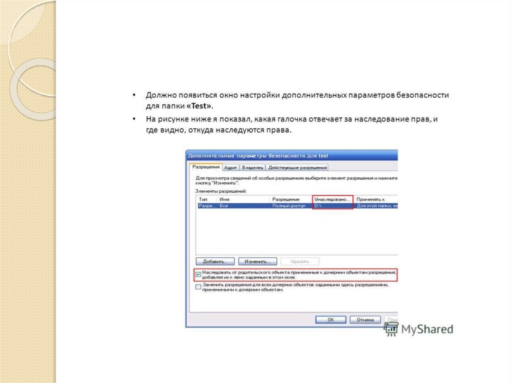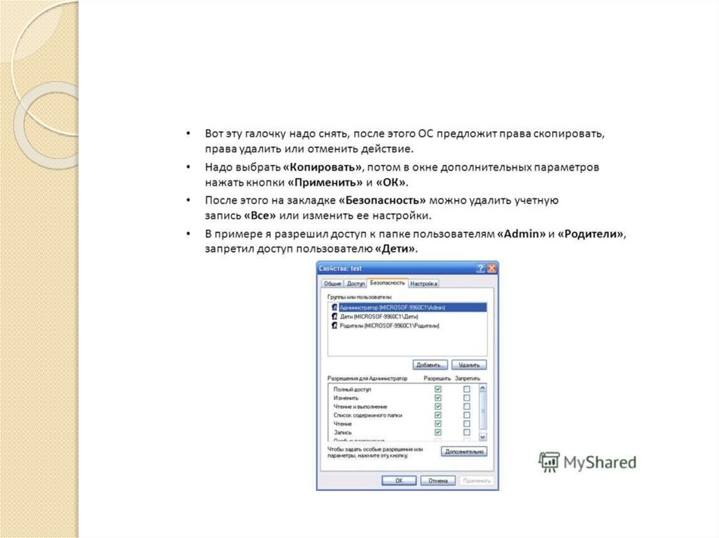 та списку прав доступа, который