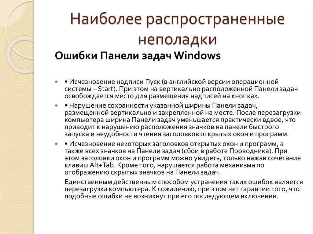 Ошибки Панели задач Windows
