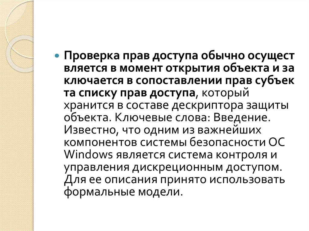 Проверка прав доступа обычно осуществляется в момент открытия объекта и за