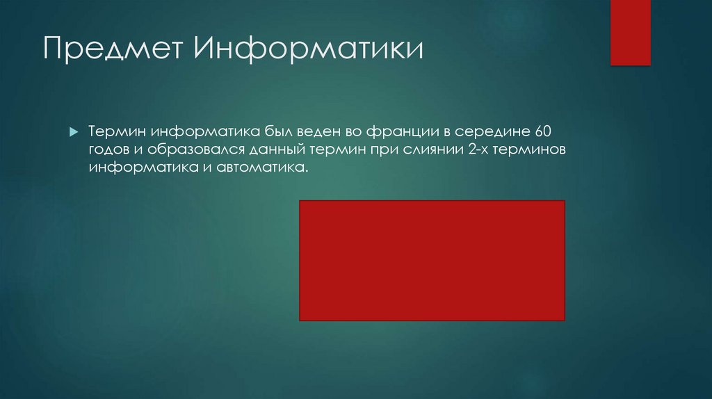 Предмет ИнформатикиТермин информатика был веден во франции в середине 60