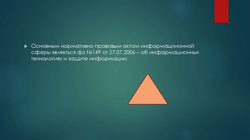 Основным нормативно правовым актом информациионнойсферы являеться фз №149 от 27.07.2006 – об инфармационных