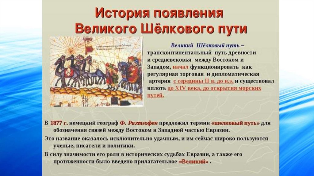 Название «Великий Шелковый путь»связано с драгоценным в те времена