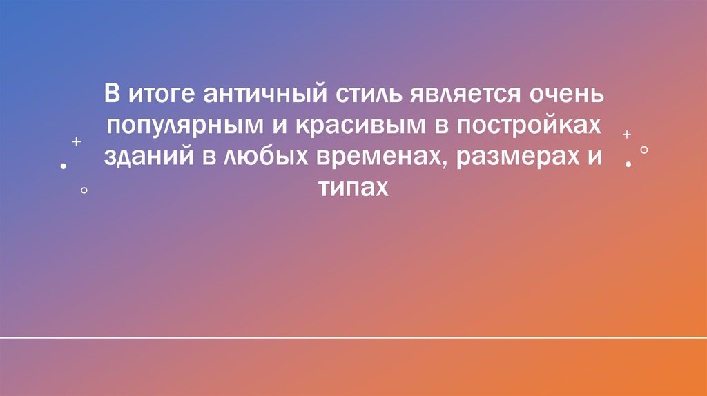 В итоге античный стиль является оченьпопулярным и красивым в постройках