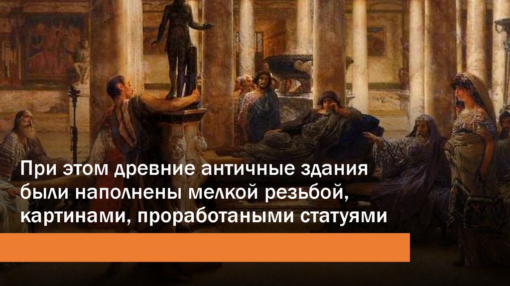 При этом древние античные зданиябыли наполнены мелкой резьбой,
