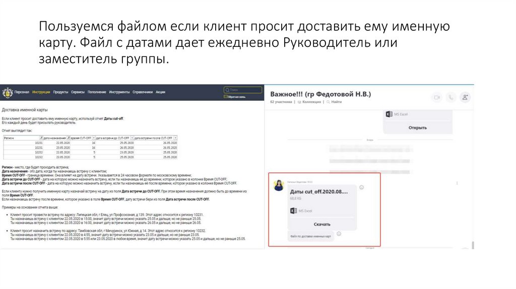 Пользуемся файлом если клиент просит доставить ему именнуюкарту. Файл с датами дает ежедневно Руководитель или
