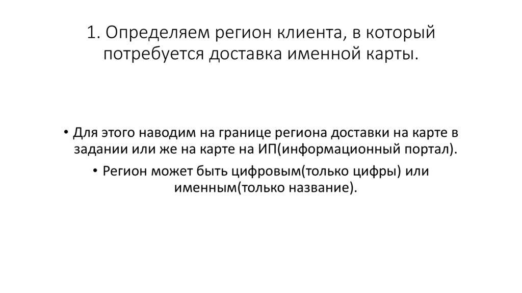 1. Определяем регион клиента, в которыйпотребуется доставка именной карты.