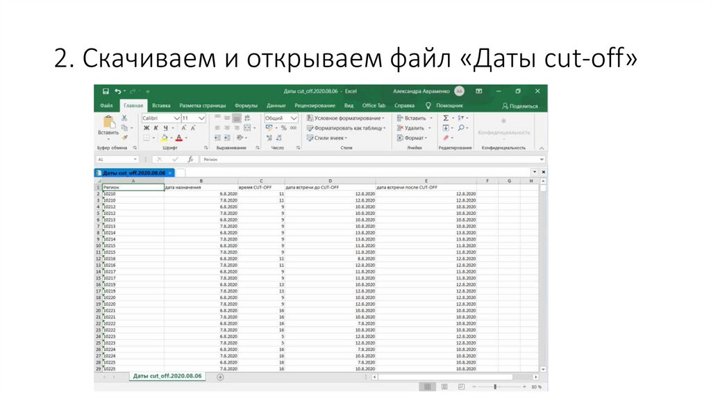 2. Скачиваем и открываем файл «Даты cut-off»6.