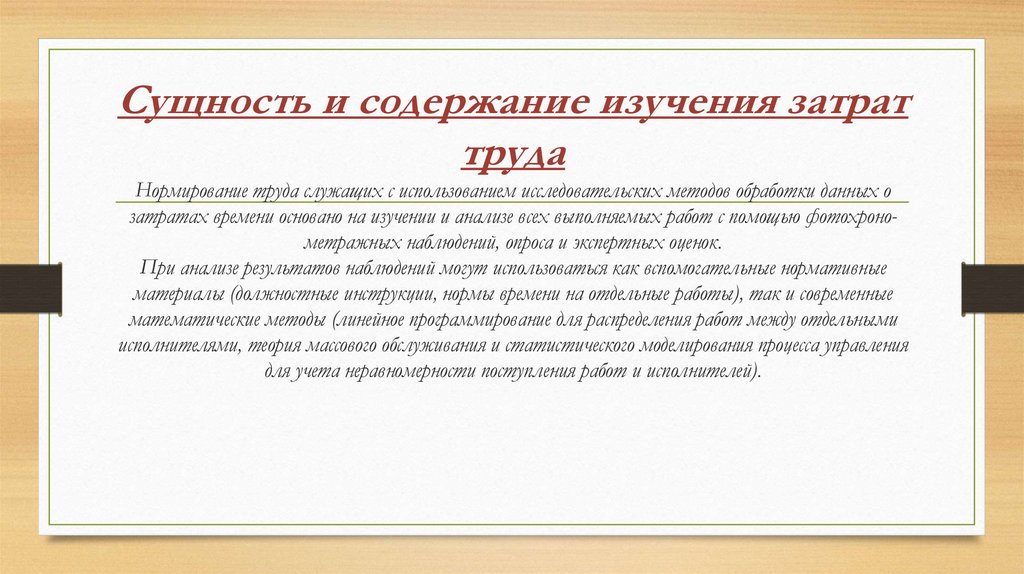 Нормирование труда служащих с использованием исследовательских методов обработки данных о