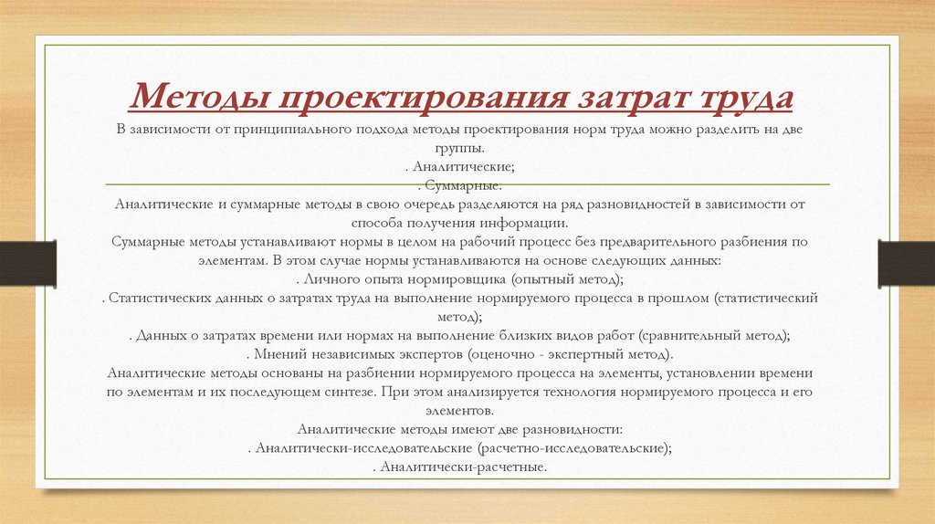 Аналитические методы основаны на разбиении нормируемого процесса на элементы, установлении времени