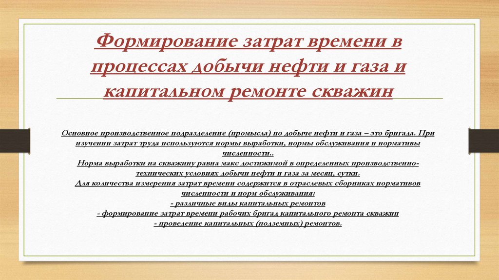 Формирование затрат времени впроцессах добычи нефти и газа и