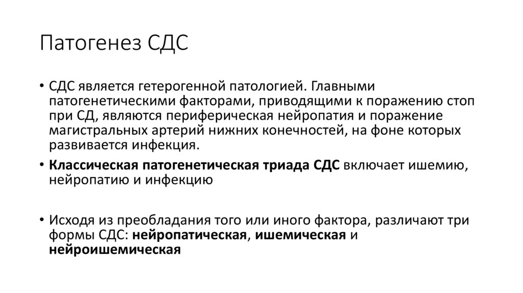• Классическая патогенетическая триада СДС включает ишемию,