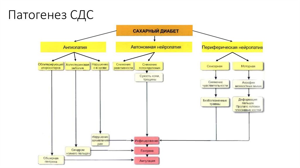• Синдром диабетической стопы (СДС) объединяет патологические