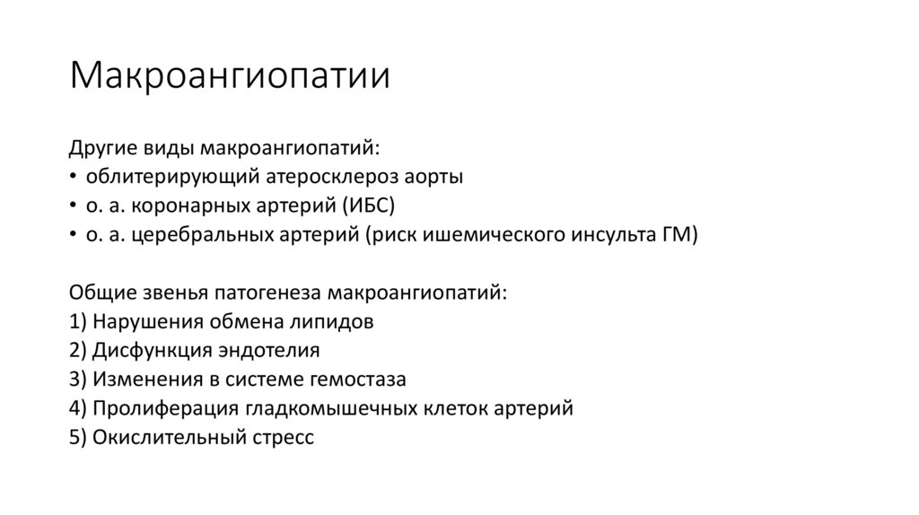 Общие звенья патогенеза макроангиопатий: