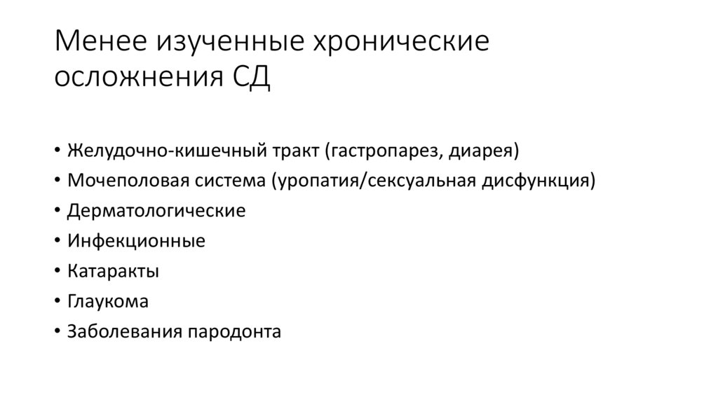 Менее изученные хроническиеосложнения СД