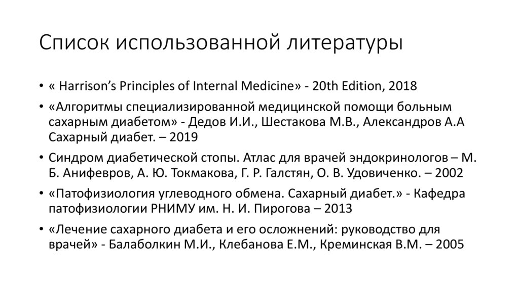 Список использованной литературы• « Harrison’s Principles of Internal Medicine» - 20th Edition, 2018