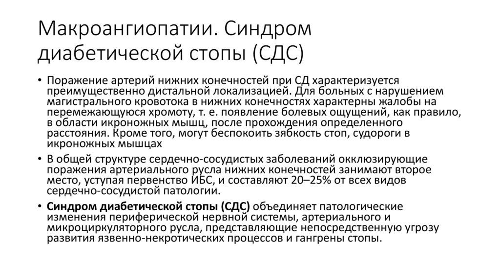 Макроангиопатии. Синдромдиабетической стопы (СДС)