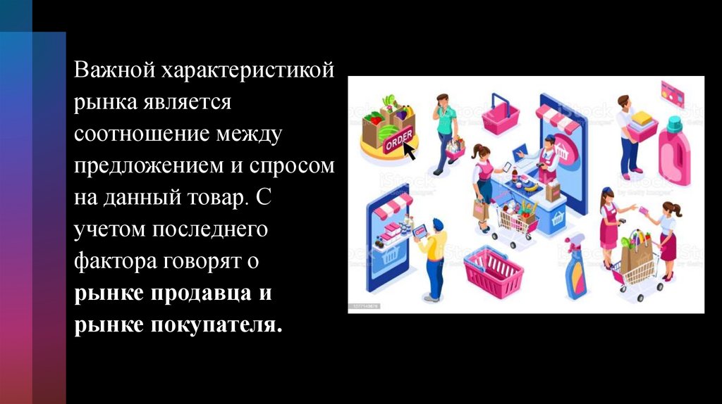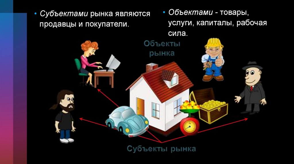• Субъектами рынка являютсяпродавцы и покупатели.