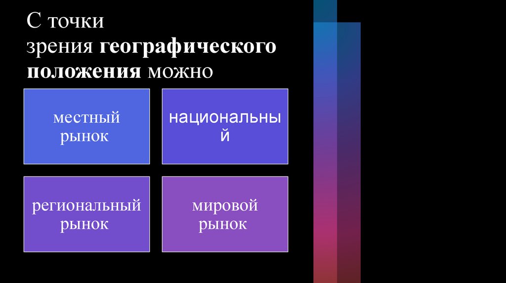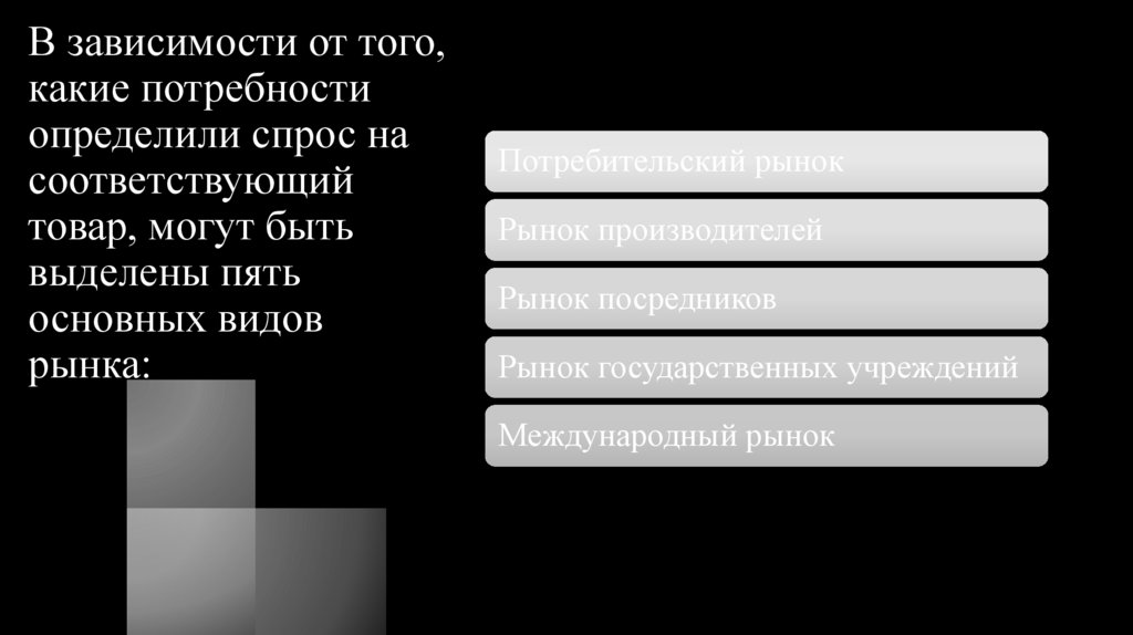 выделяют следующие рынки: