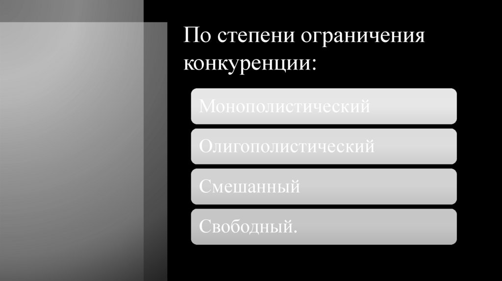 По степени ограниченияконкуренции: