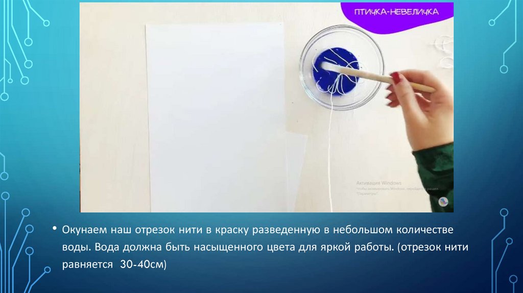воды. Вода должна быть насыщенного цвета для яркой работы. (отрезок нити