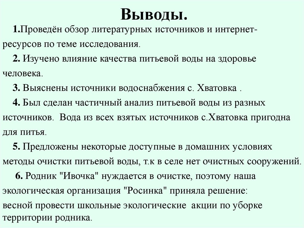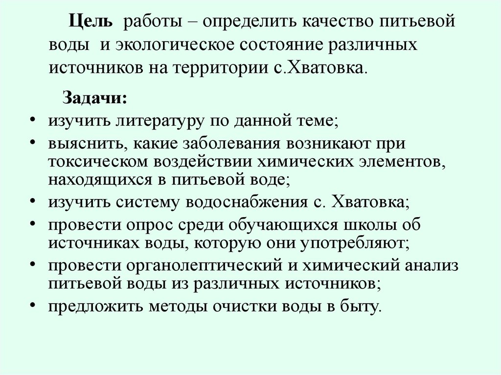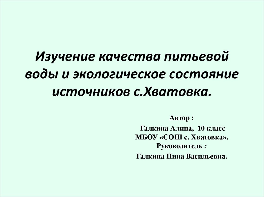 Изучение качества питьевой воды и экологическое состояние источников с. Хваточка
