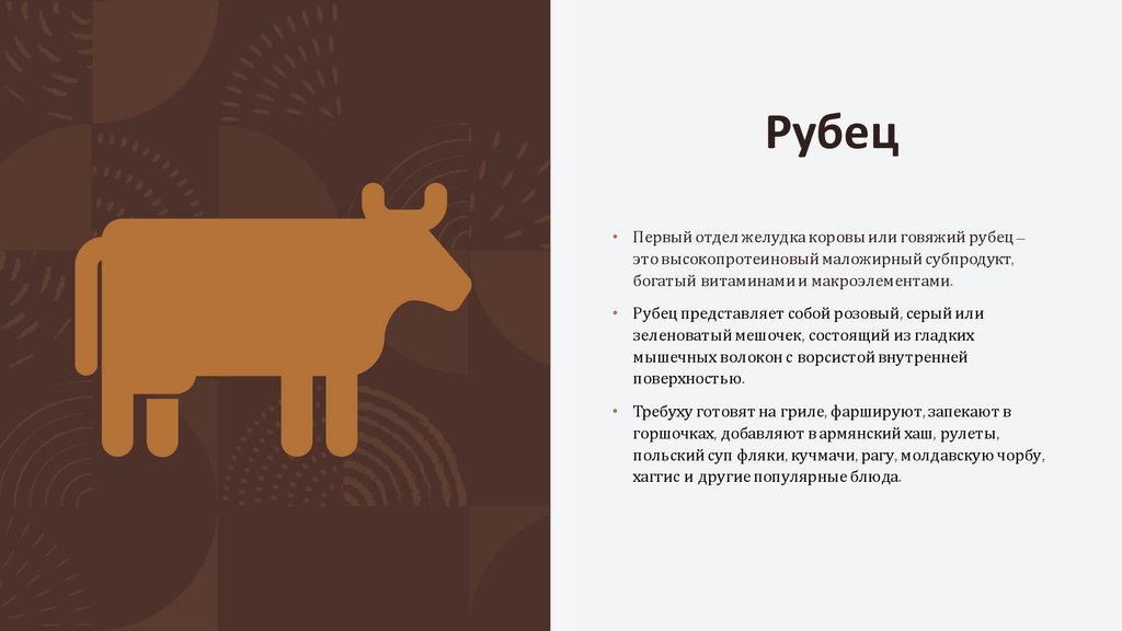 Рубец• Первый отдел желудка коровы или говяжий рубец –
