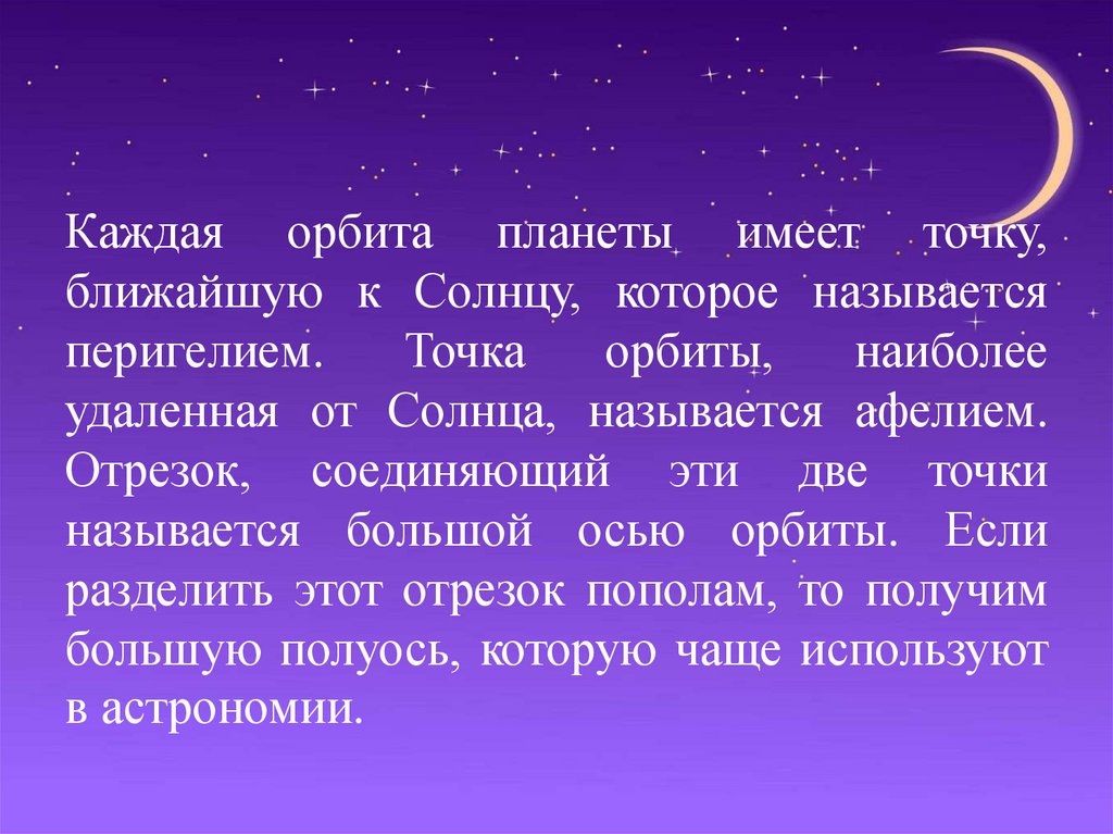 Каждая орбита планеты имеет точку,ближайшую к Солнцу, которое называется