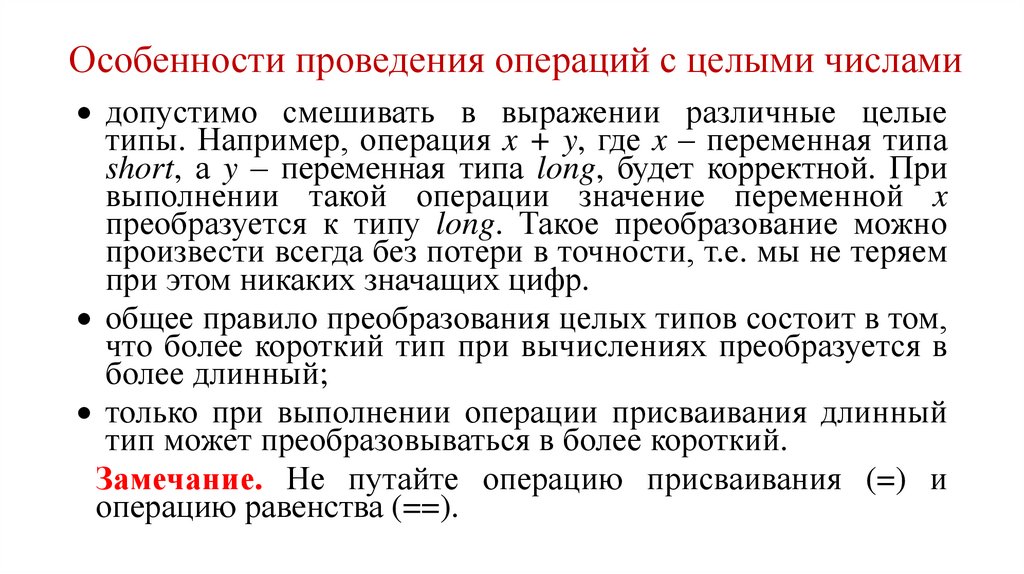 Особенности проведения операций с целыми числамидопустимо смешивать в выражении различные целые