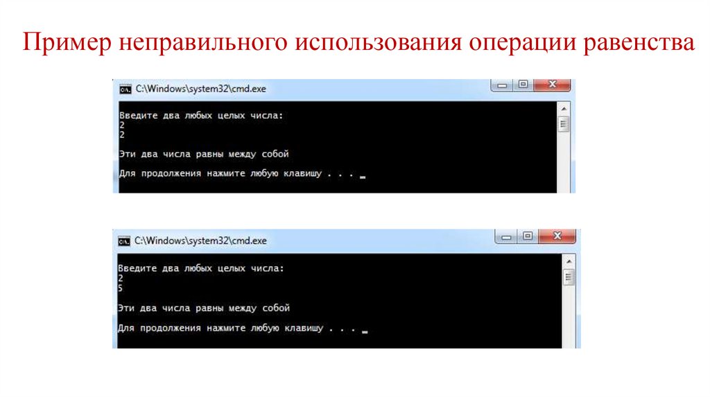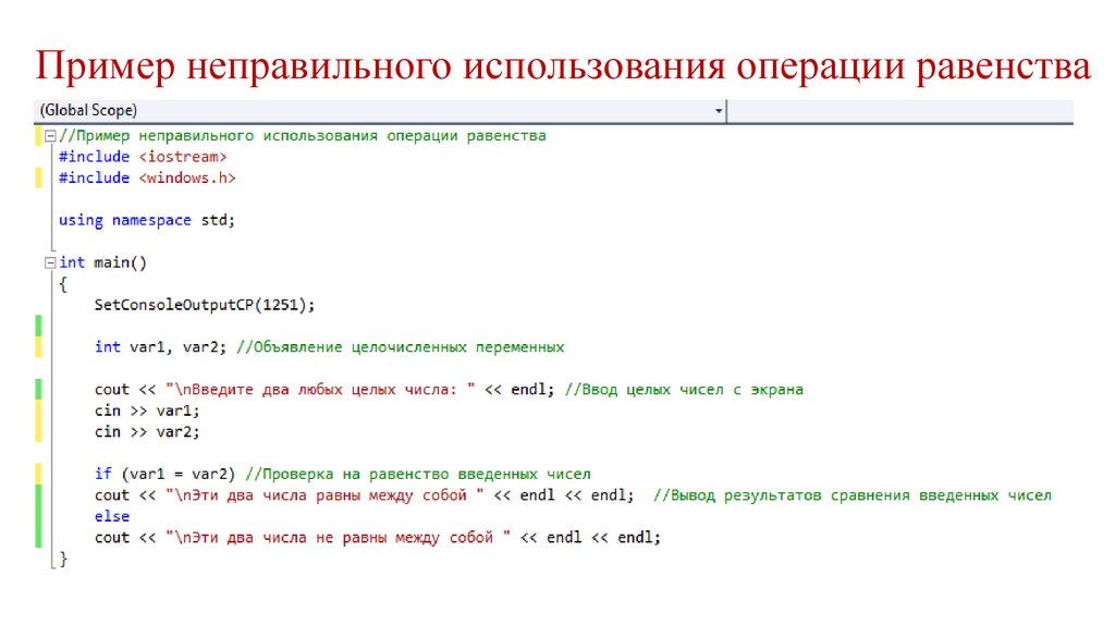 Пример неправильного использования операции равенства13.