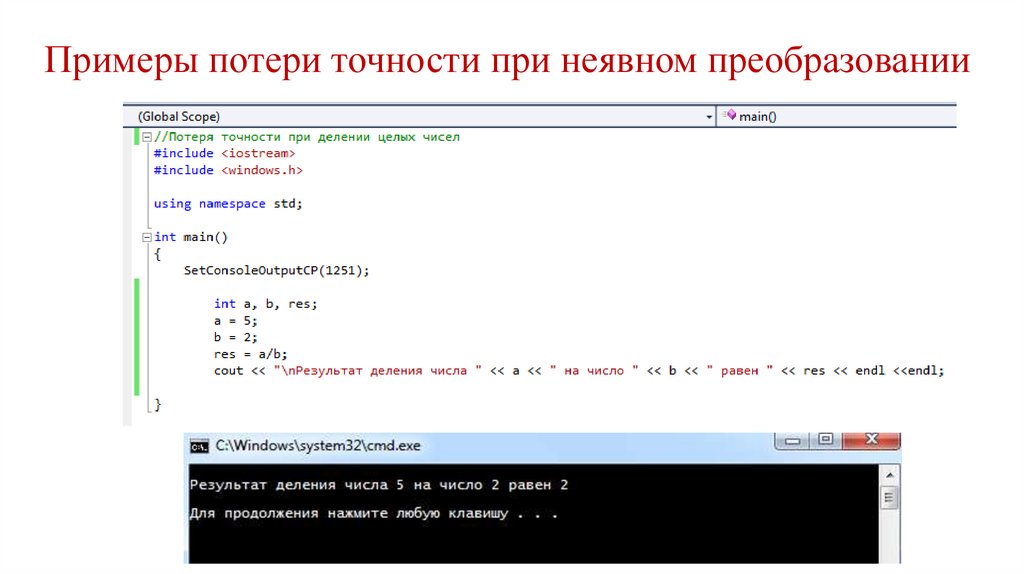 Примеры потери точности при неявном преобразовании25.