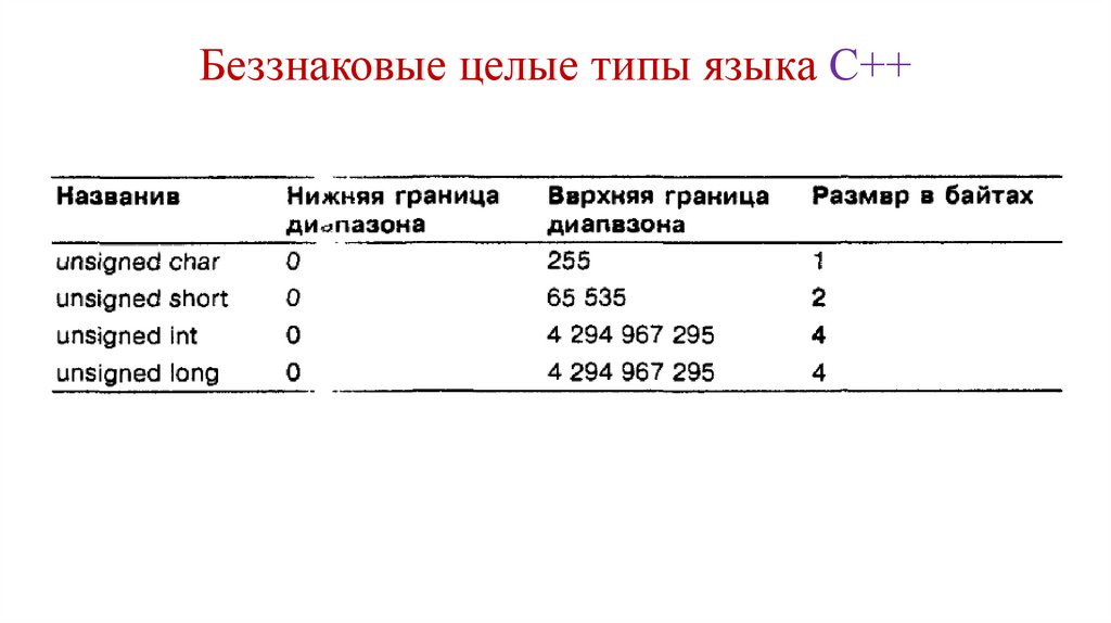 Беззнаковые целые типы языка С++8.