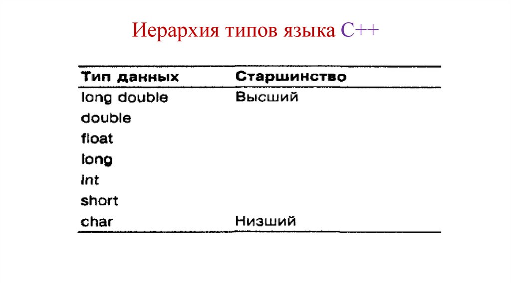 Иерархия типов языка С++10.