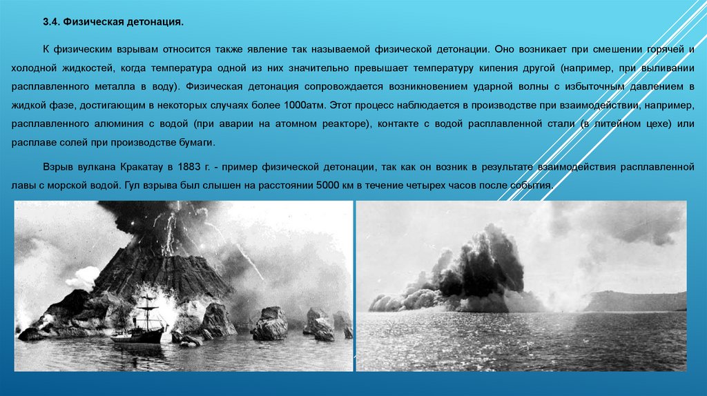 Взрыв вулкана Кракатау в 1883 г. - пример физической детонации, так как он возник в результате взаимодействия расплавленной