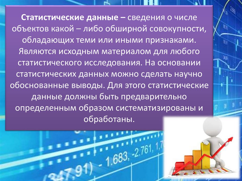 Статистические данные – сведения о числеобъектов какой – либо обширной совокупности,