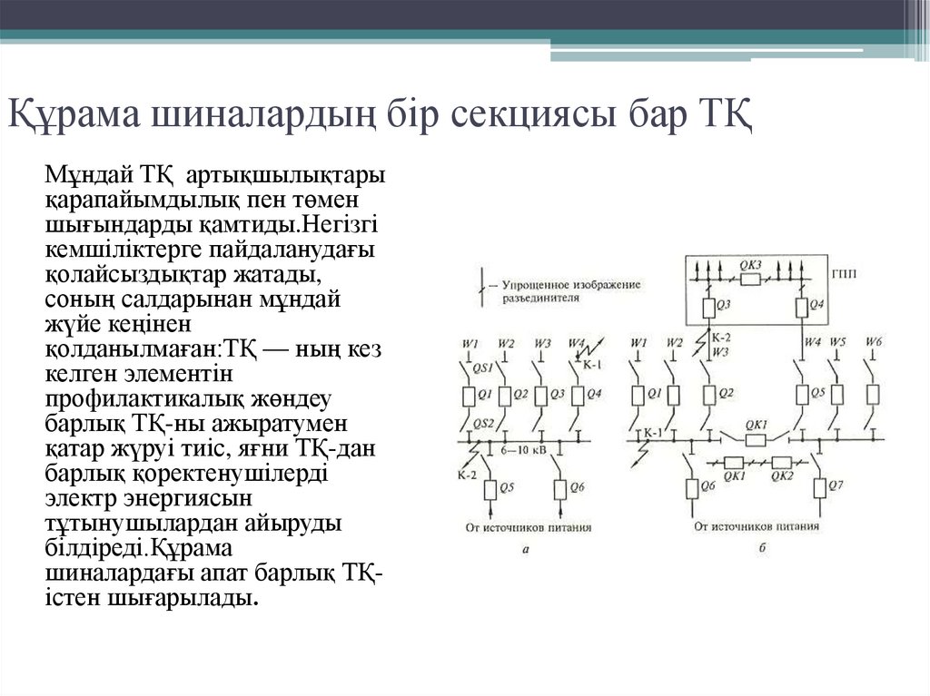 Құрама шиналардың бір секциясы бар ТҚМұндай ТҚ артықшылықтары