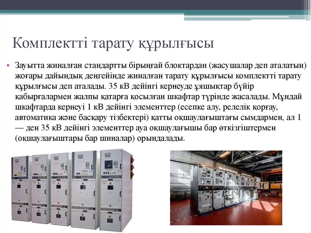 құрылғысы деп аталады. 35 кВ дейінгі кернеуде ұяшықтар бүйір
