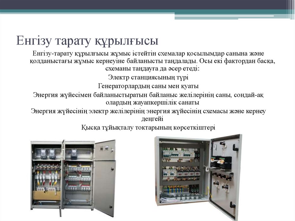 Электр станцияларында өндірілетін электр энергиясы тұтынушыларға,өнеркәсіптік кәсіпорындарға және халыққа тарату құрылғылары, әуе желілері
