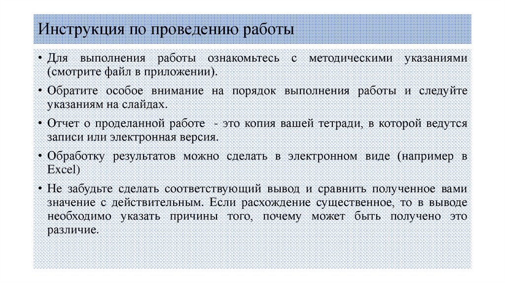 Инструкция по проведению работы• Для выполнения работы ознакомьтесь с методическими указаниями