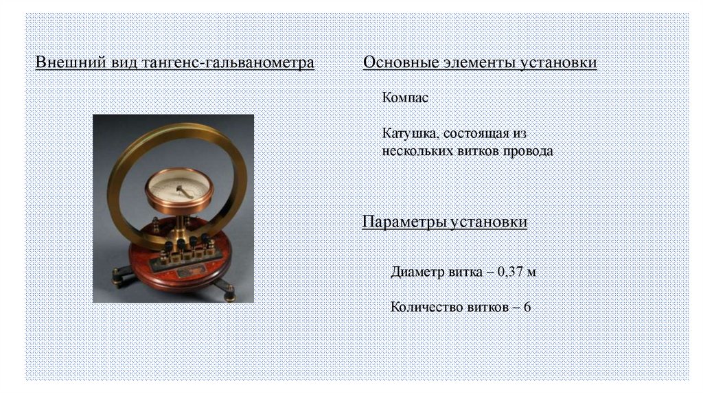 Внешний вид тангенс-гальванометраОсновные элементы установки