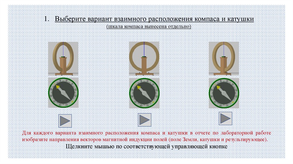 1. Выберите вариант взаимного расположения компаса и катушки(шкала компаса вынесена отдельно)