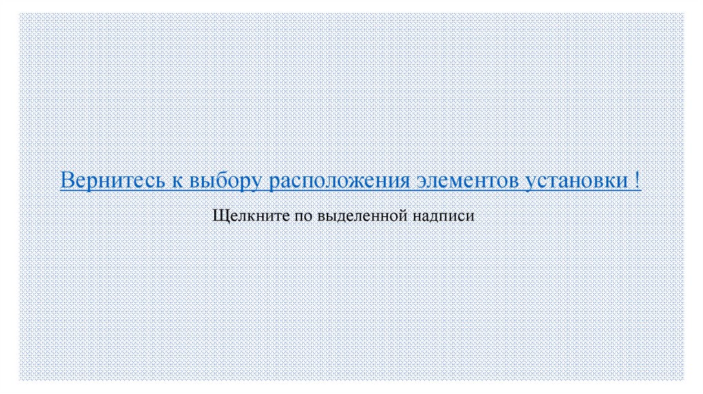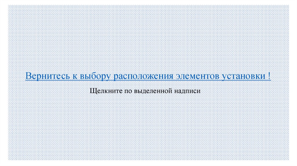 Вернитесь к выбору расположения элементов установки !Щелкните по выделенной надписи