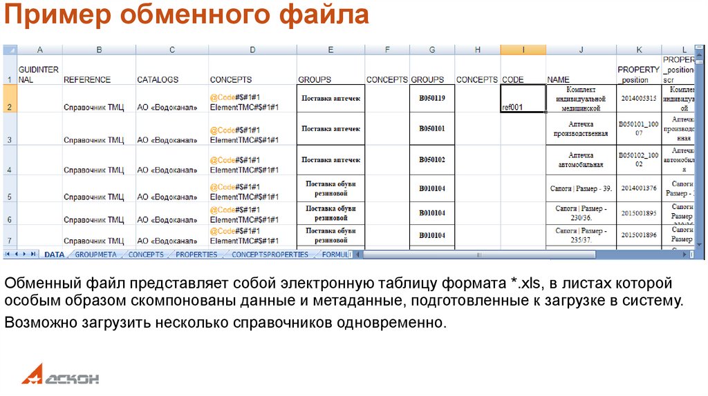 Пример обменного файлаОбменный файл представляет собой электронную таблицу формата *.xls, в листах которой